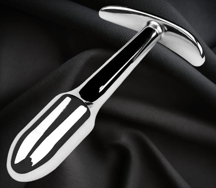 Precizně, ručně vyrobené anální drandidlo z leštěného nerez kovu